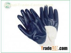 Blue Nitrile Coated Industrial Protective Gloves With Fleeced Jersey Cotton Liner